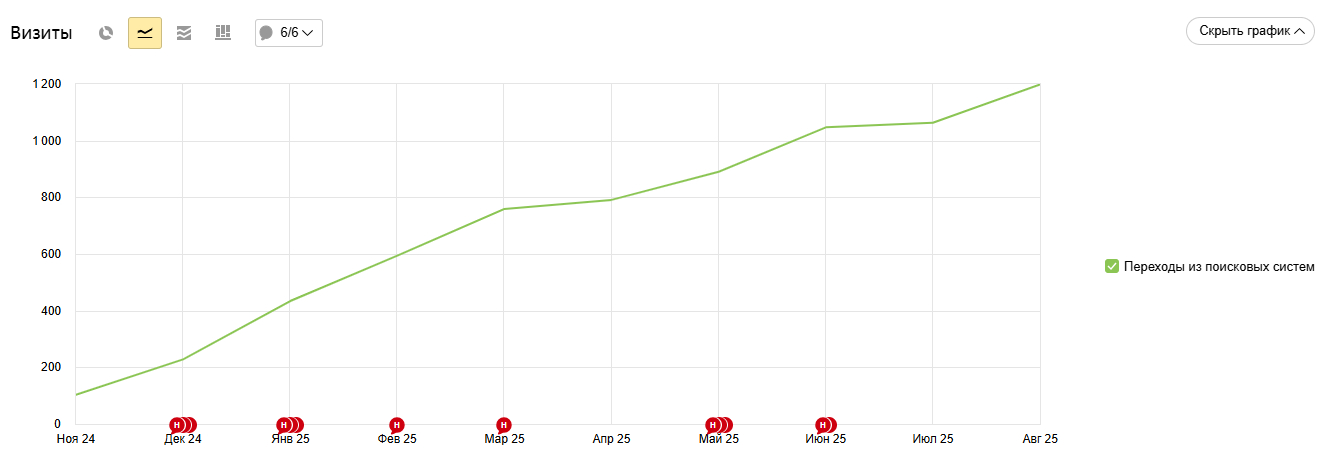 - Видимость увеличилась до 25-27% в Яндексе и Google.