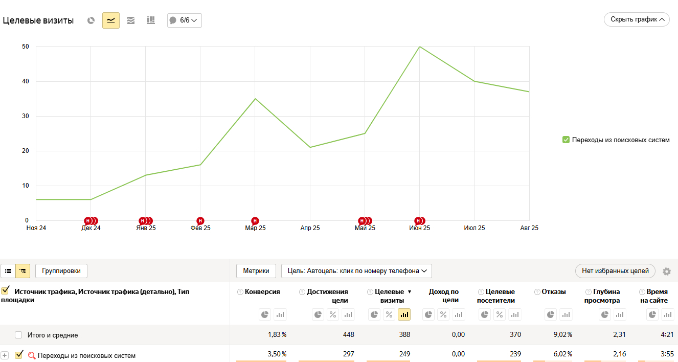 - Улучшить конверсию сайта, чтобы посетители чаще звонили или записывались на приём через мессенджеры.