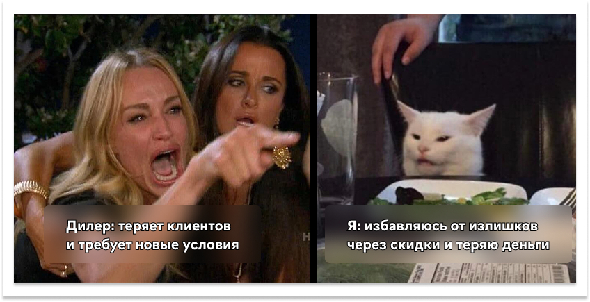 Когда производитель работает через дилерскую сеть и пытается быстро распродать излишки по скидкам, это создаёт волну недовольства у партнёров.