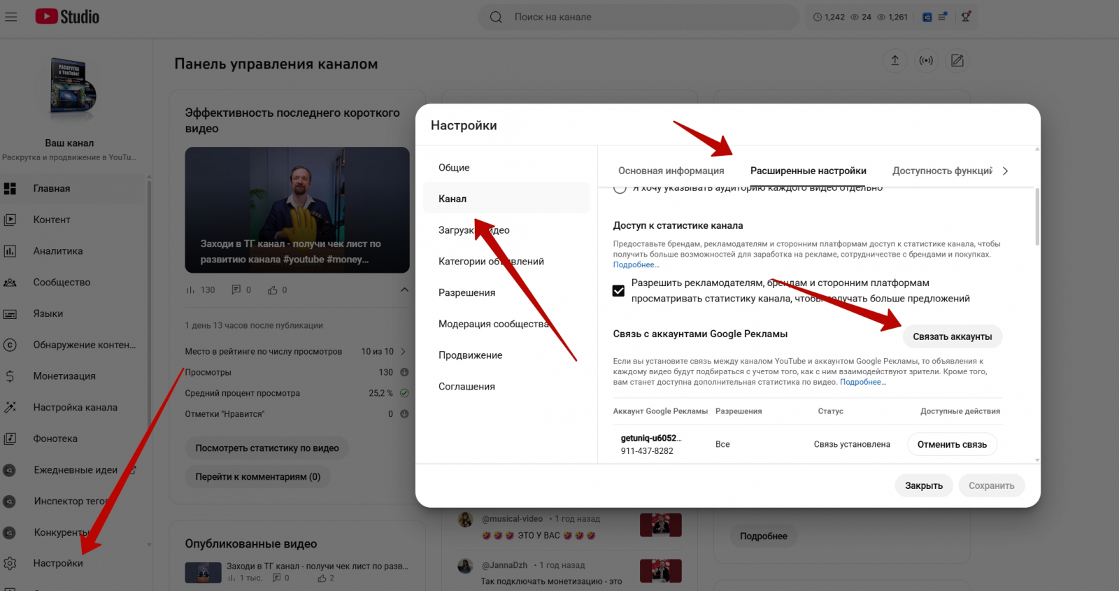1. Когда цель кампании является рост целевых подписчиков - мы обязательно СВЯЗЫВАЕМ google ads и канал.