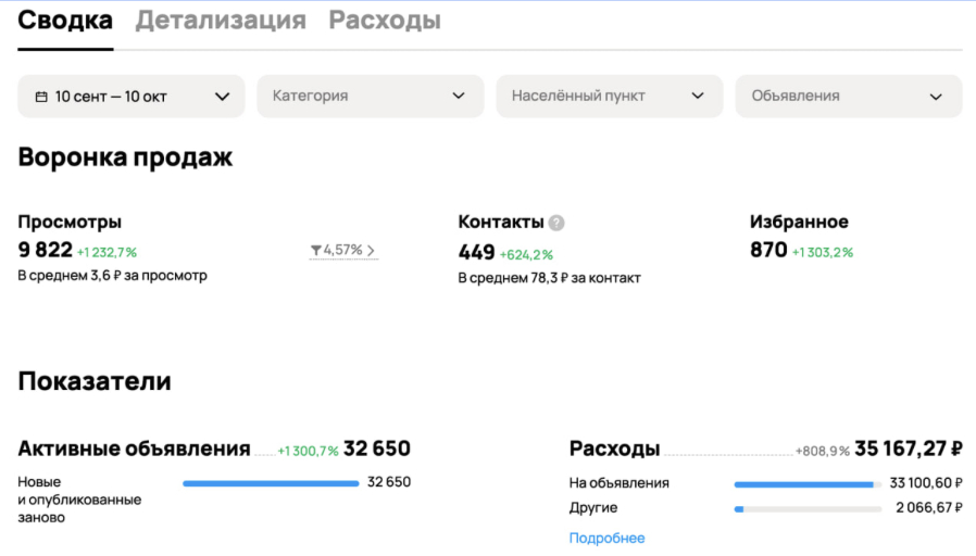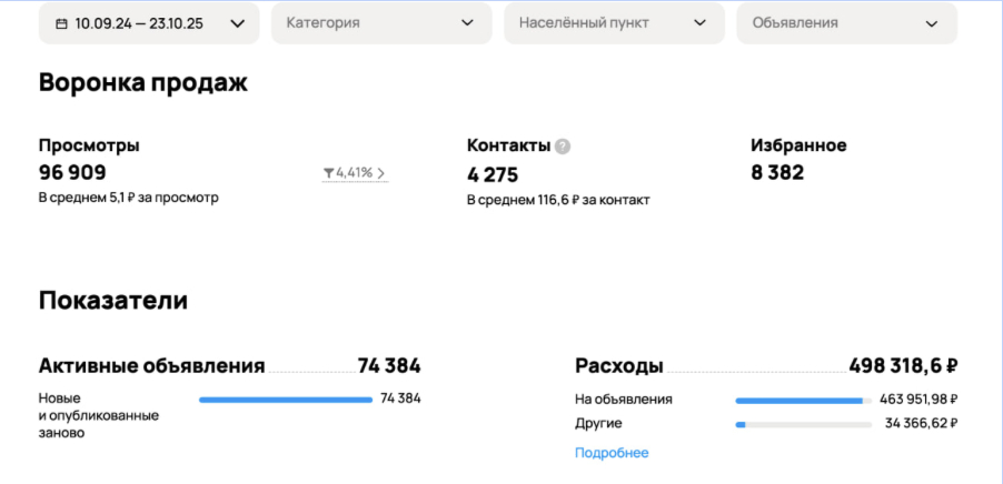 Несмотря на высокий объем объявлений, мы удерживали цену заявки на уровне 120 рублей, что для этой ниши — отличный показатель эффективности.