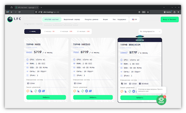 Отдельный фокус был сделан на упрощении процесса оформления заказа. Выбор тарифа, сравнение характеристик серверов и покупка услуг хостинга теперь требуют меньше действий. Пользователь может быстрее перейти от выбора VPS или выделенного сервера к запуску своего проекта.