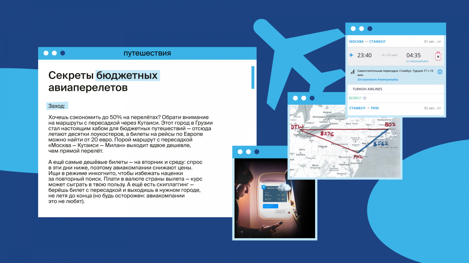 А вот каким получился ролик про бюджетные перелёты по этому сценарию: