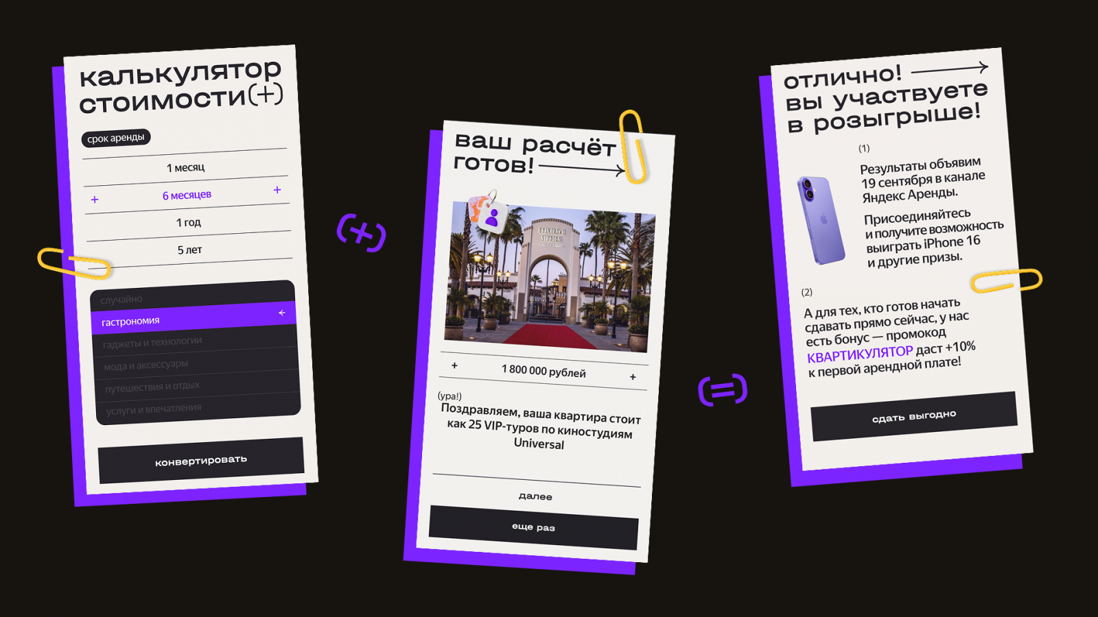 Мы хотели наглядно показать, что доход от сдачи жилья может привнести в жизнь конкретные вещи и приключения. Нужно просто перевести цифры в желания и эмоции.