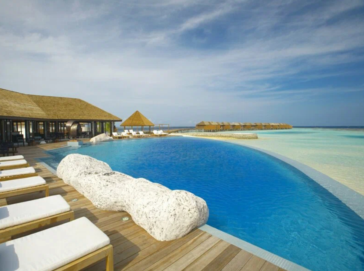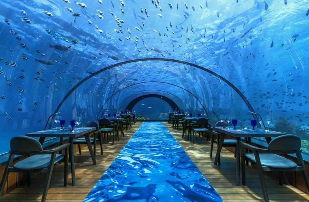 Hurawalhi — не только про отдых в отеле с подводным рестораном, но и про отличный снорклинг без необходимости куда-то ехать. Несколько рифов вокруг острова создают прекрасные условия для наблюдения за морскими обитателями прямо у виллы.
