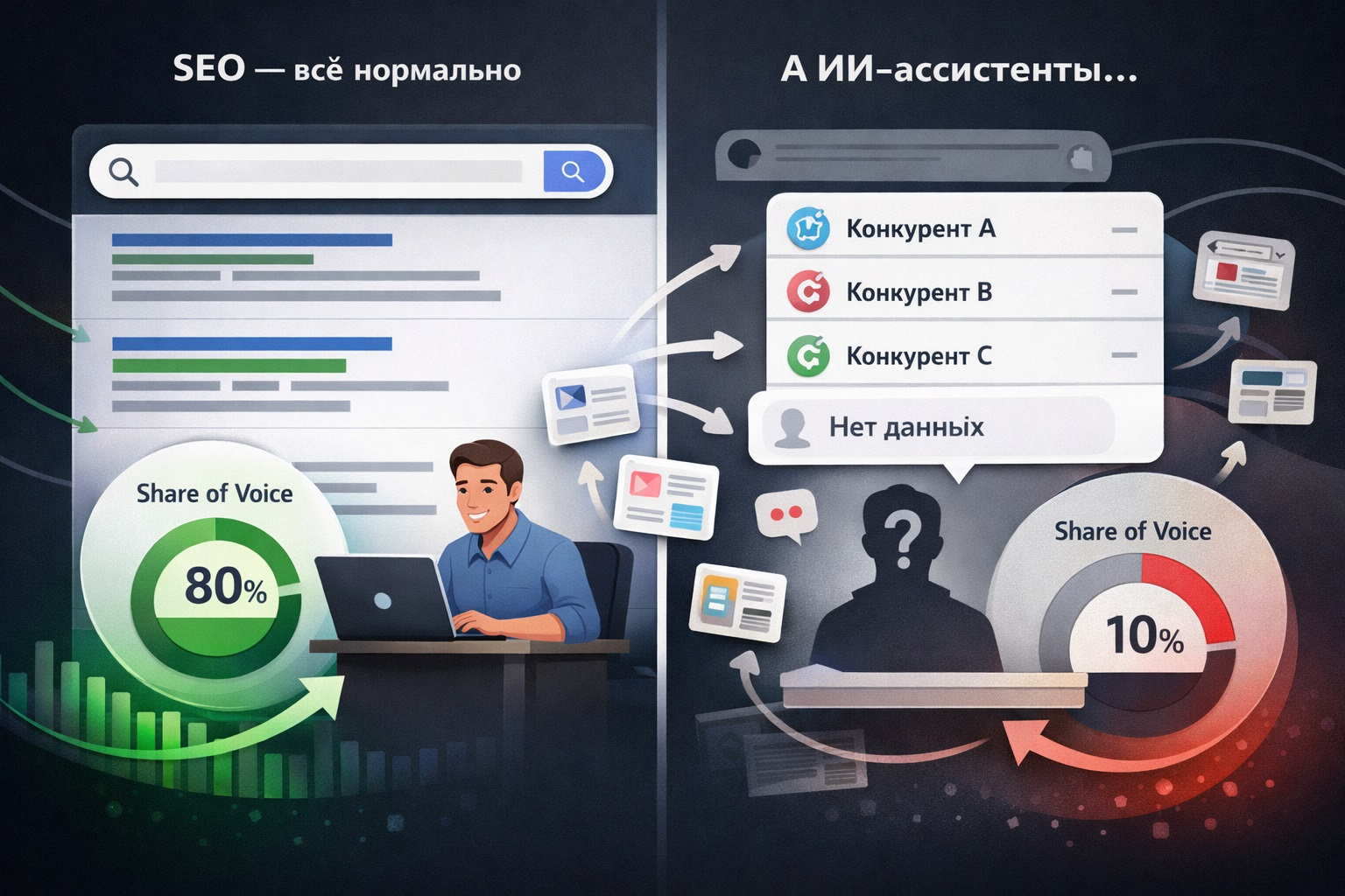 Когда клиент в России говорит «у нас всё нормально с SEO», часто это правда — в классическом поиске. Но параллельно у него уже идёт второй, менее заметный «поиск»: сотрудники спрашивают у ChatGPT и Gemini, клиенты уточняют у ассистентов, журналисты и партнёры сверяют факты в Perplexity. И в этих ответах бренд может быть либо источником и рекомендацией, либо пустым местом. GEO/LLMO услуга продаётся легче всего не через обещания «поднимем видимость», а через наглядный пресейл: показать, как ИИ уже говорит о компании сегодня, где бренд теряет долю голоса и какие шаги дают измеримый эффект.
