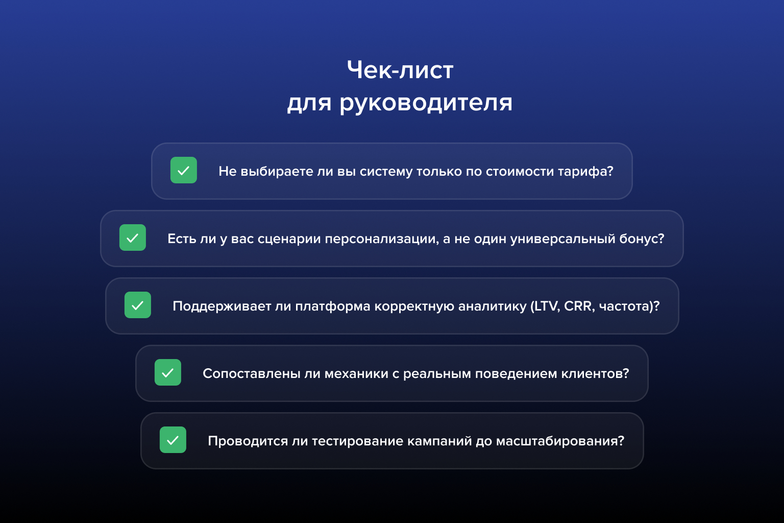 Самая частая ошибка — выбирать платформу «по цене». Формально программа запускается, бонусы начисляются, но без сценариев, сегментов и аналитики все превращается в раздачу скидок.
