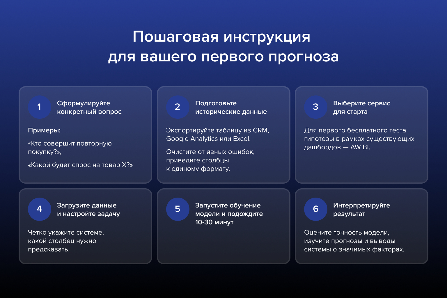 Практический вывод: Если вам нужен быстрый старт и максимальная простота в рамках привычной аналитики — начинайте тестировать с AW BI. Если стоит задача глубокой работы с данными и моделями — изучите Yandex DataSphere. Если вам нужно больше информации, прочитайте наш большой обзор инструментов для самостоятельной настройки аналитики и ML-прогнозирования без кода.