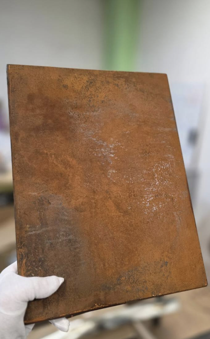 Ключевое отличие нашей технологии от простой покраски «под ржавчину» — это создание настоящего, физического слоя окисления на поверхности.