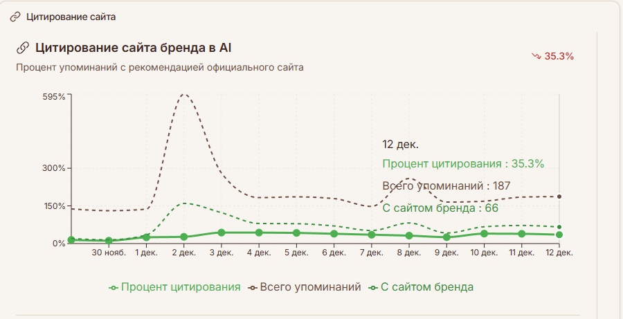 Цитирование сайта бренда - динамика попадает ли сайт бренда в источники или нет.