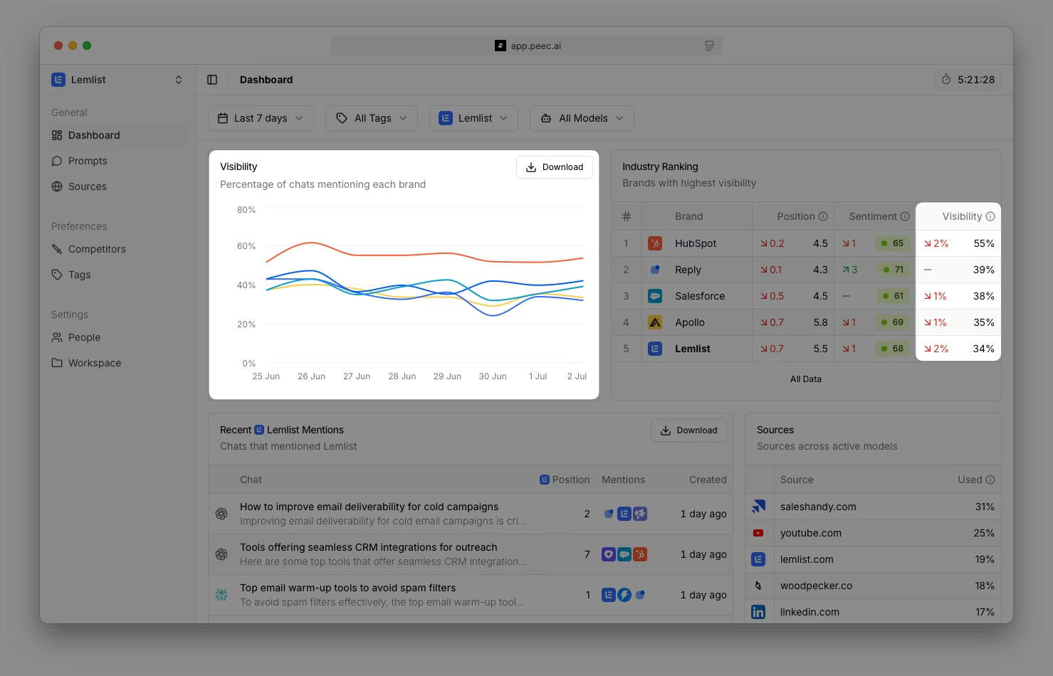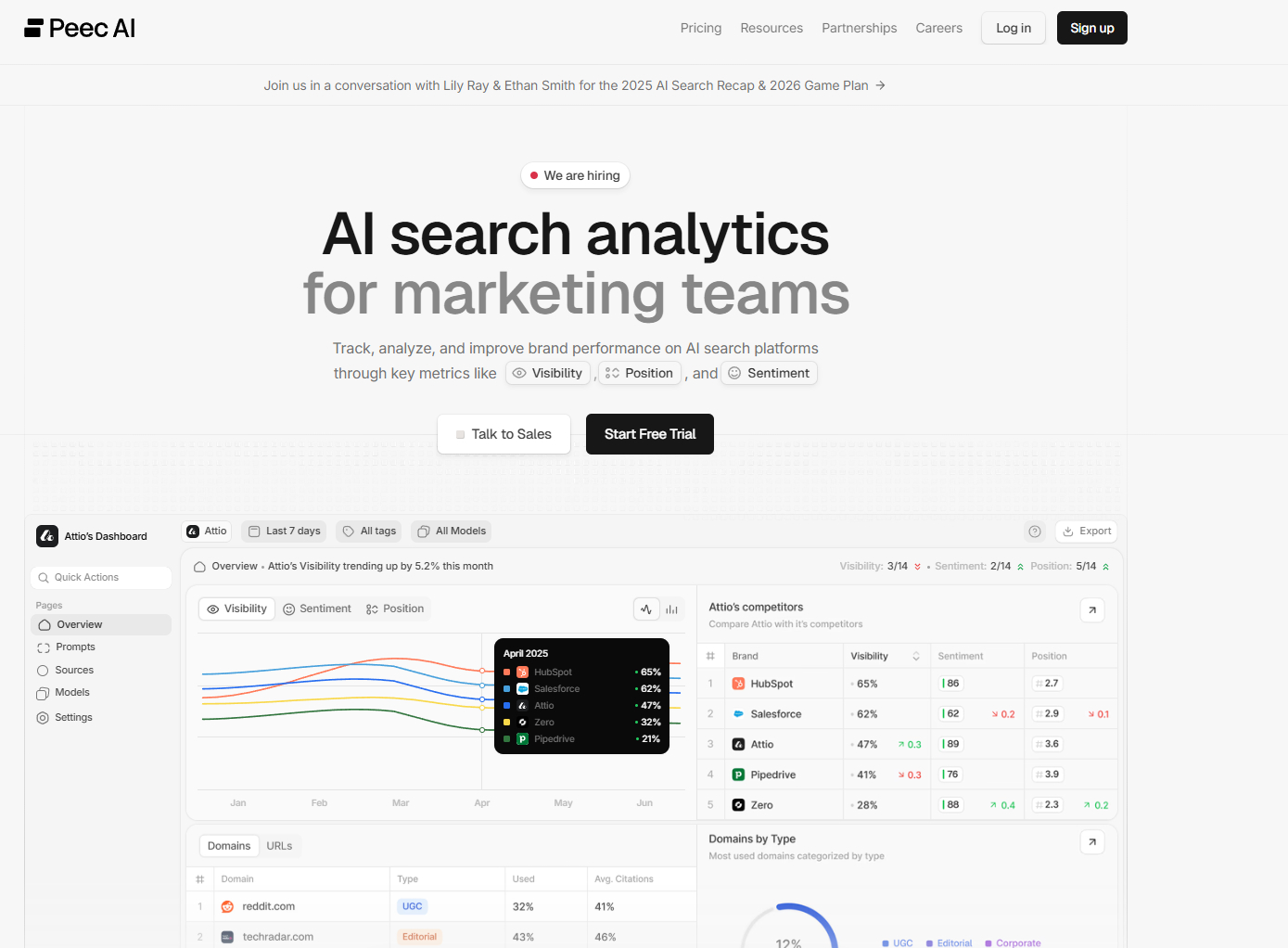 4. Для агентств — Peec AI с Pitch Workspaces и Looker Studio интеграцией