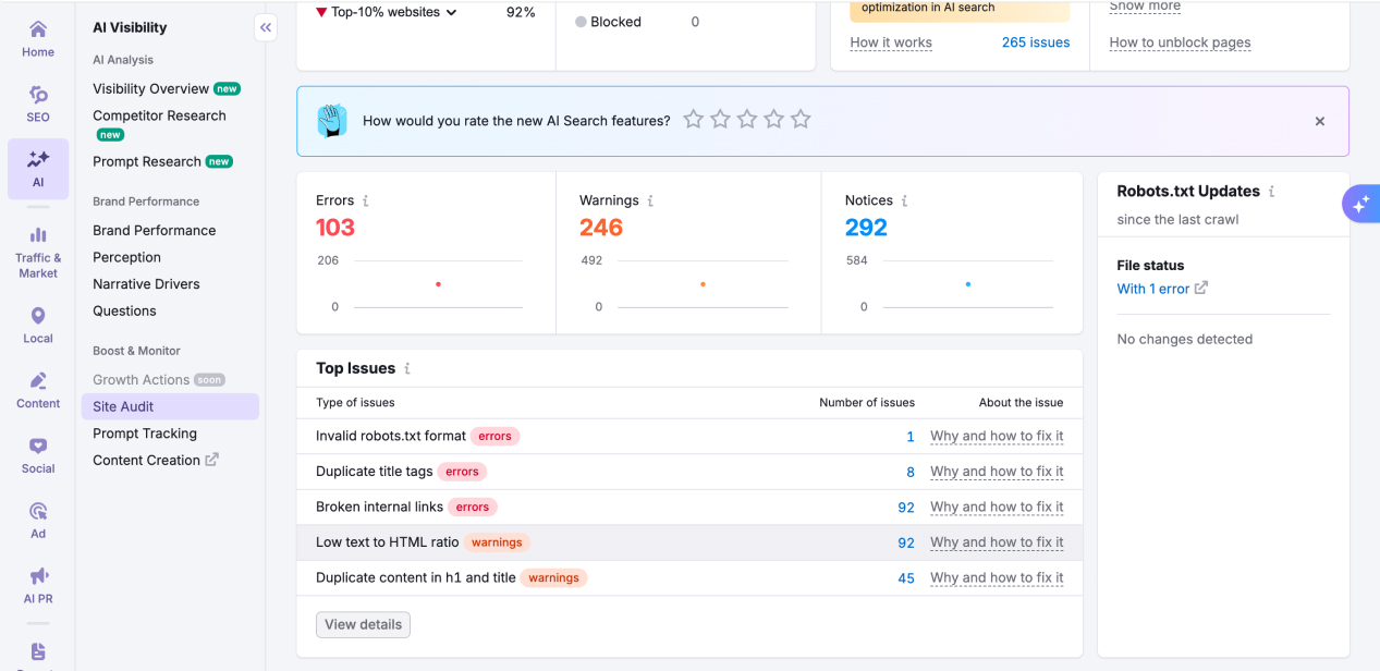 Некоторые инструменты (Scrunch, seoClarity) имеют функцию Misinformation Detection для автоматического обнаружения ошибок.