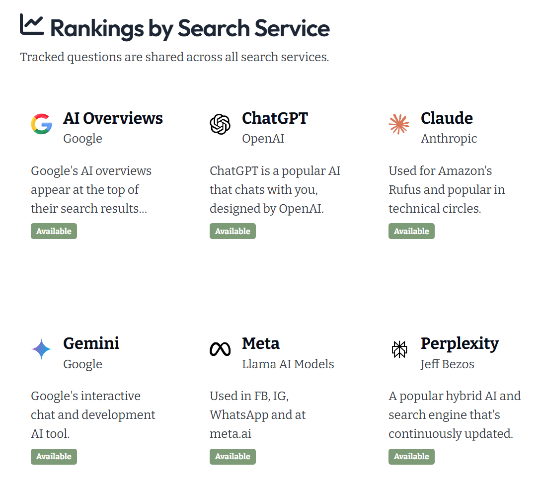 2. Нет Google AI Overviews (фокус на чат-ботах, не на поисковых AI)