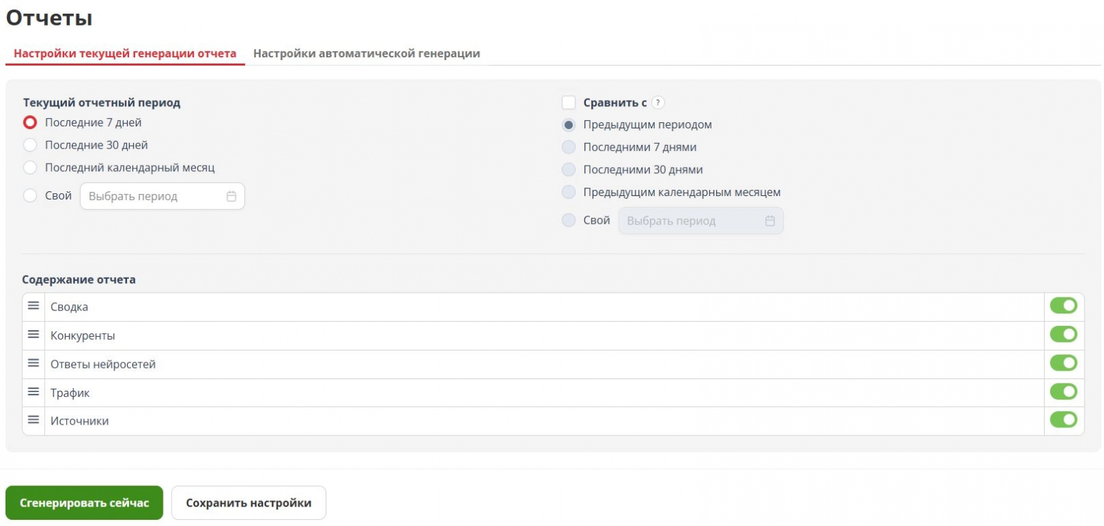 - AI-генерация промптов - автоматический подбор релевантных запросов на основе анализа сайта, продуктов , ниши.