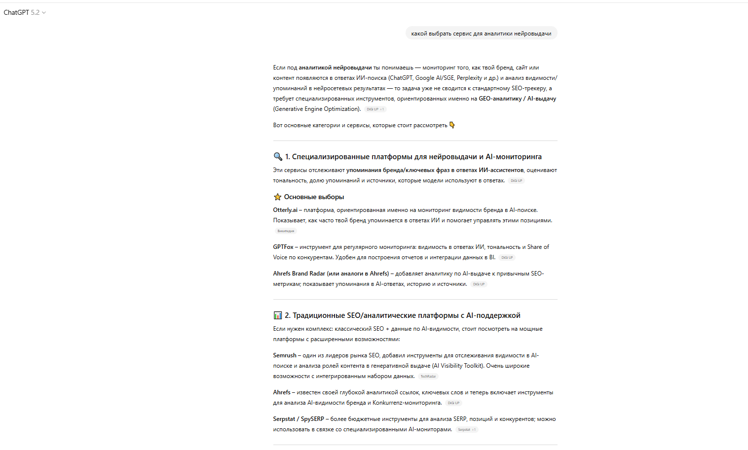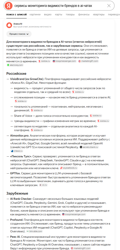 - «Сервисы мониторинга видимости брендов в AI-чатах»