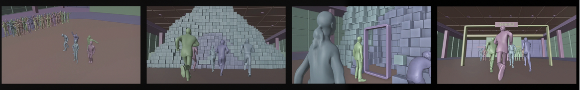 Проект «Авито Работа» начинался как динамичная история о поиске работы, рассказанная через метафору полосы препятствий. Однако за лёгкостью, стилем и юмором ролика скрывалась сложная техническая структура: гора из офисной бумаги, портал Авитджет, лабиринт, светящиеся кнопки, умножение толпы и масштабный клинап.Все эти элементы требовали не просто аккуратного CG, а управляемого процесса, встроенного в продакшен с первого дня. За внешней лёгкостью ролика стоит довольно жёсткая реальность: горящие сроки и целый набор сложных CG-задач, которые нужно было не просто красиво решить, а сделать так, чтобы весь процесс был контролируемым и предсказуемым для продакшена ещё «на берегу» — задолго до выхода на площадку.