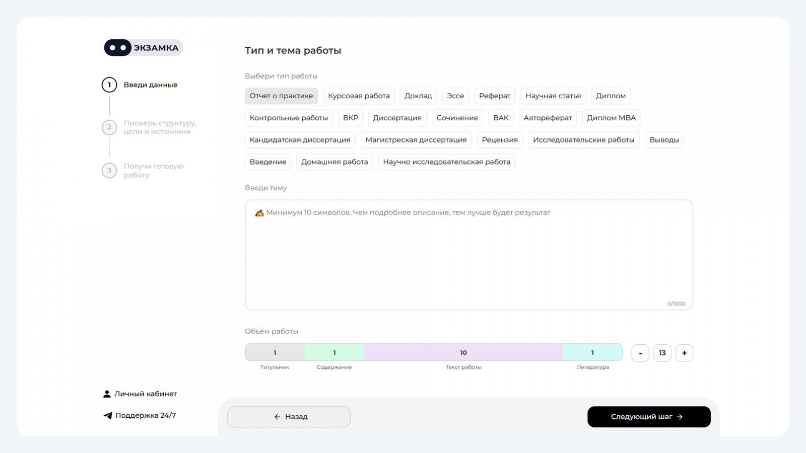 Точно сформулируйте тему работы и напишите примерный объем: