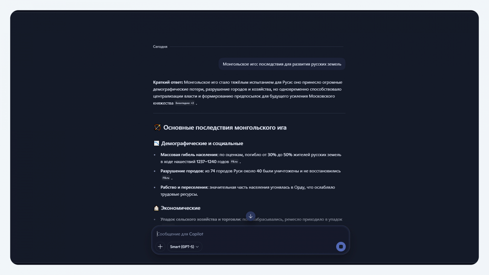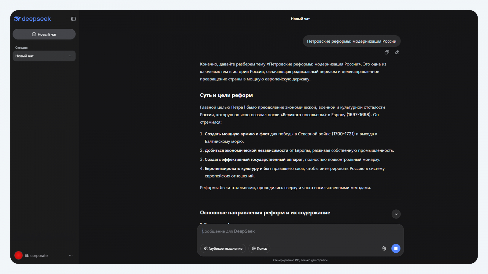 Учитывая, что речь идет о докладах и рефератах, которые пишут студенты российских вузов, крайне важно, чтобы AI-бот поддерживал русский язык: хорошо понимал его грамматику, лексические нюансы, контекст, грамотно переводил с других иностранных языков. Сервисы вроде ChatGPT и Claude хороши в плане анализа данных и быстроты написания текстов, но периодически могут путаться в терминологии и ошибаться в переводах.