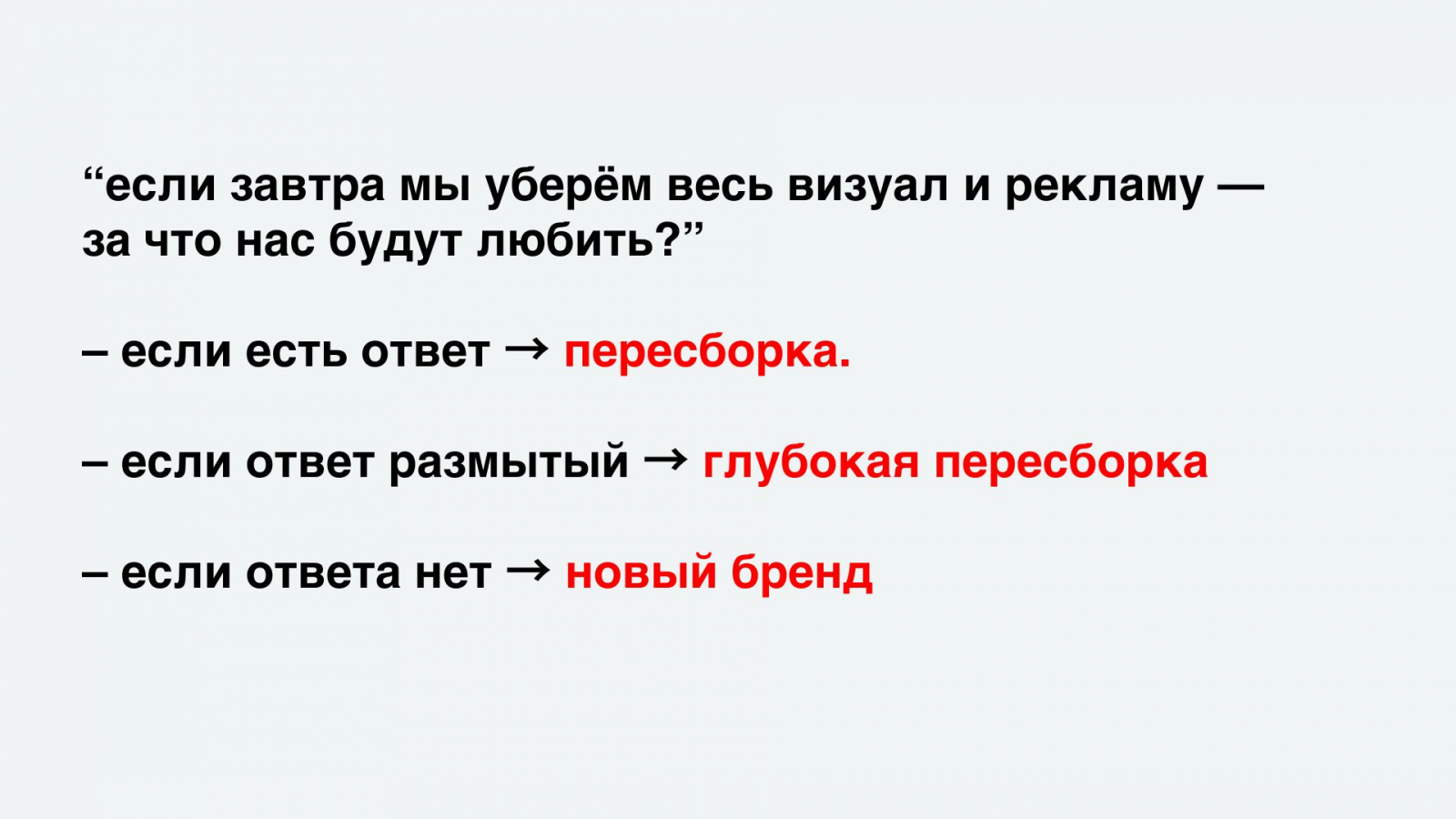 Как вы думаете, по каким признакам, в целом, можно понять, что бизнесу нужна “пересборка” бренда или нужно вообще с нуля его “перепридумать”, что ломается и на каком этапе?