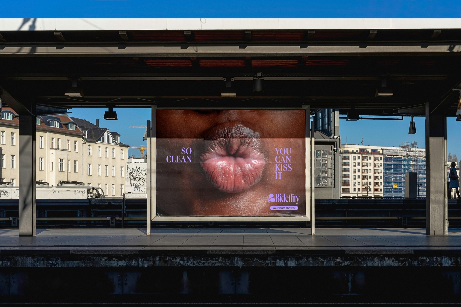 Ещё один приём — намеренная провокация, которая играет на грани, но остаётся в рамке “гигиены как ценности”. Немецкий бренд товаров для интимной гигиены Bidetlity в 2025 году запустил наружную кампанию для душевых кабин для интимной гигиены с дерзким слоганом So Clean You Can Kiss It («Настолько чисто, что можно поцеловать»). На постерах крупным планом изображены губы с очевидной отсылкой к чистым ягодицам. Компания заявила: «Эта кампания разрушает табу и воспевает красоту интимной гигиены».