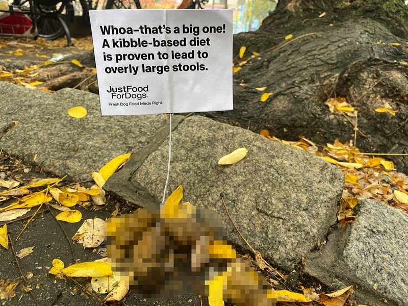 Так, JustFoodForDogs в 2022 году разместил мини-билборды прямо в собачьих кучах: бренд объяснял, что по форме и цвету стула можно судить о качестве рациона и состоянии пищеварения.