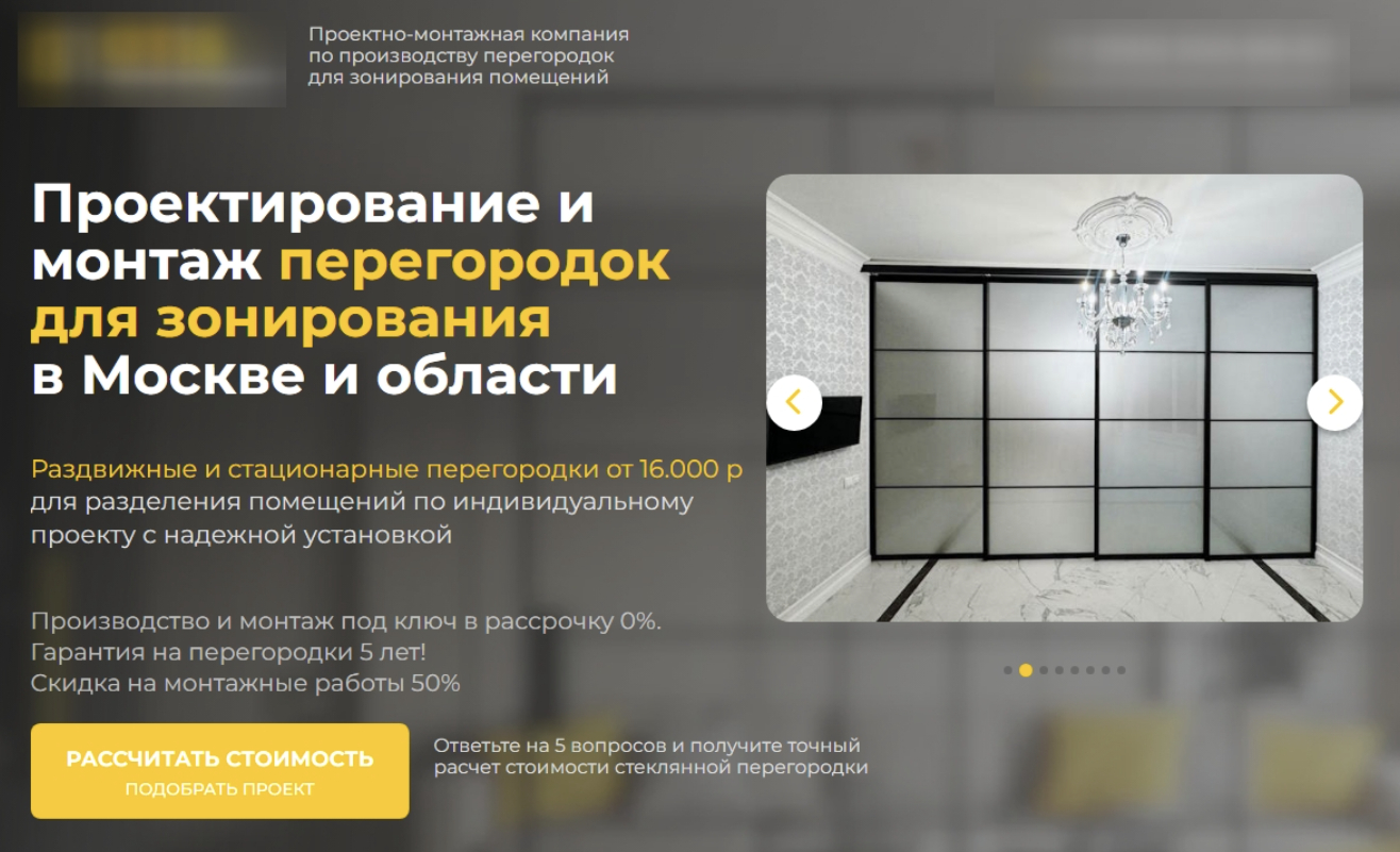 Сегодня расскажу кейс по продвижению проектно-монтажной компании, которая изготавливает перегородки для зонирования помещений. Это раздвижные и стационарные конструкции, выполненные по индивидуальному проекту с надежной установкой.