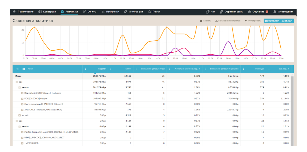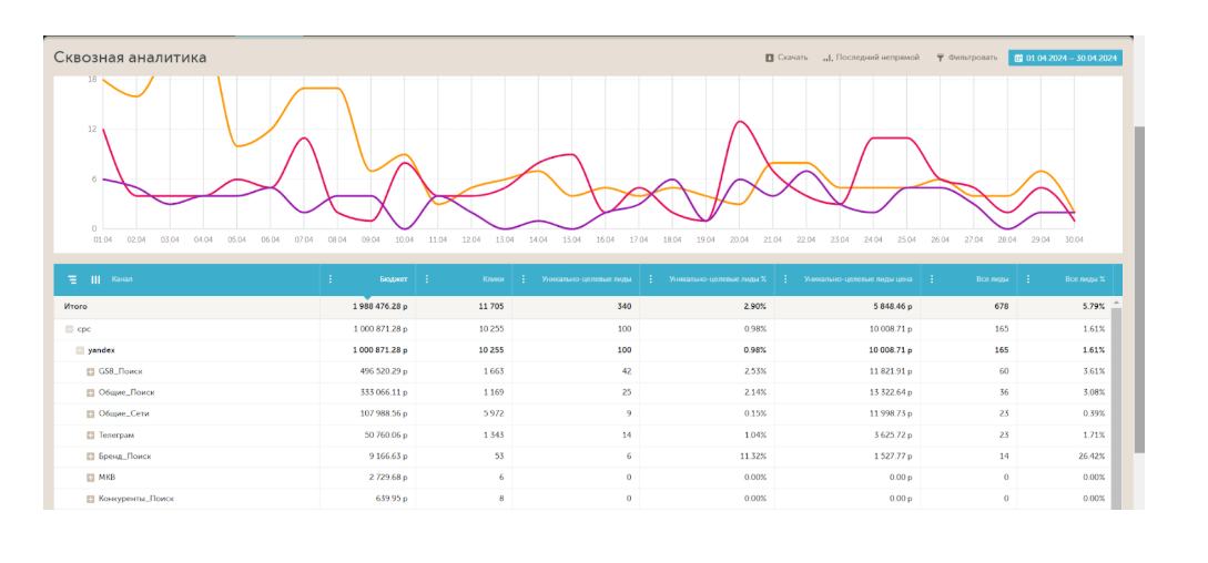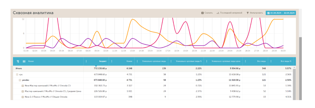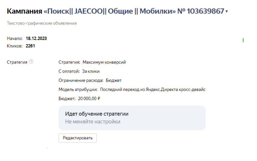В Яндекс Директ внедрили сквозную аналитику Calltouch для отслеживания конверсий (уникально-целевые звонки и оставленные заявки)Перенастроили РК с новыми креативами и новыми автостратегиями с оптимизацией по конверсиям и оплатой за клики - этот тип стратегии требует обучения для стабильной работы, но сейчас наиболее эффективен.