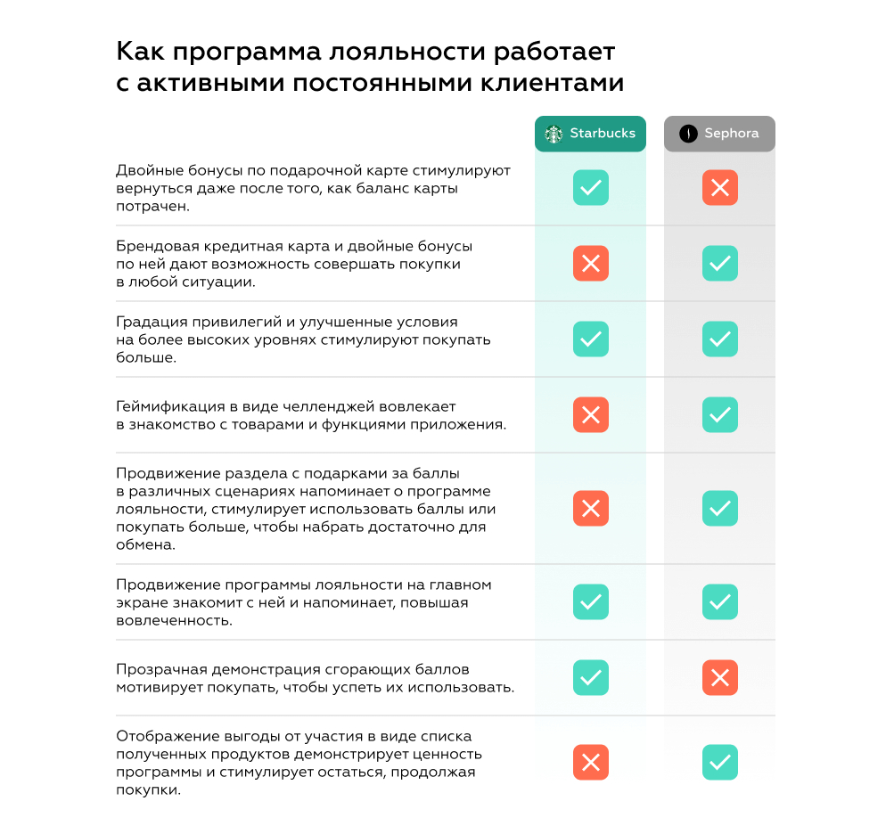 С ростом клиентской базы привлечение, вовлечение и удержание клиентов становится сложнее — бренды используют программы лояльности, чтобы мотивировать на покупки и другую активность. Мы в Markswebb изучили программы лояльности крупнейших мировых компаний — Starbucks и Sephora, и в этой статье мы поделимся лучшими практиками, которые позитивно влияют на бизнес-метрики и улучшают пользовательский опыт. Они охватывают и особенности самих программ лояльности (как они устроены, какие преимущества предлагают), и их мобильных приложений — какие задачи решает сервис и насколько эффективно устроено взаимодействие с ним.