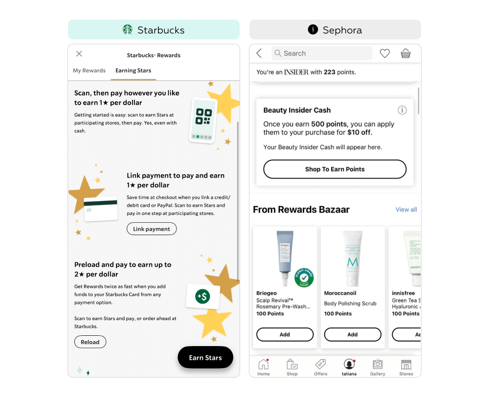 После регистрации в приложениях Sephora и Starbucks все участники автоматически становятся участниками программы лояльности и получают доступные привилегии.