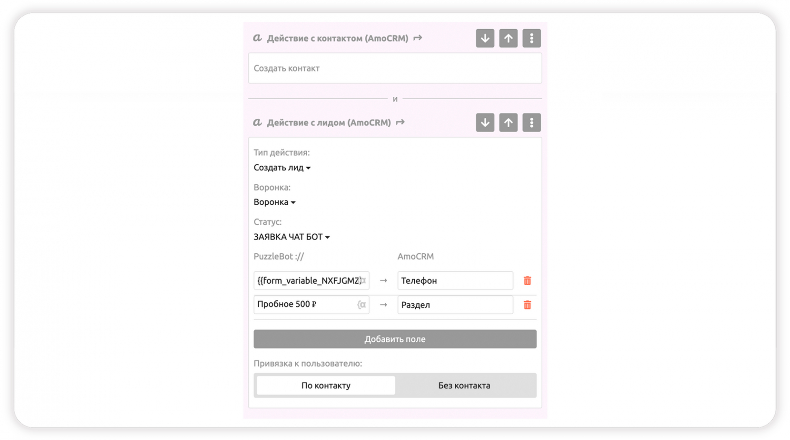 Заявки из бота, передаются в AmoCRM и дублируются в закрытую Telegram-группу. Лиды отправляются с сохранением информации о разделах, чтобы администратор понимал, какие именно занятия интересуют человека.