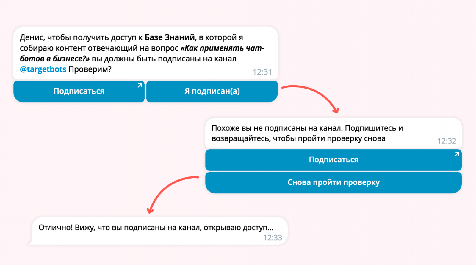 — Если подписан на ресурс, то отправка команды для получения доступа.