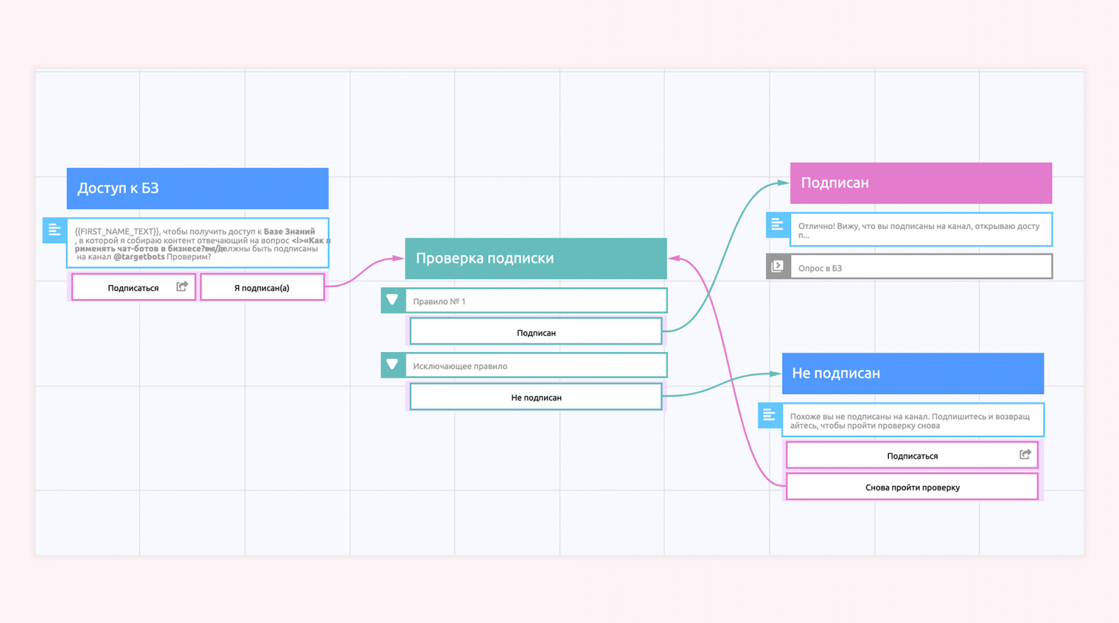 — Исключающее правило (если правило выше не было выполнено, то произойдёт это действие) ➞ команда, предлагающая подписаться на канал.