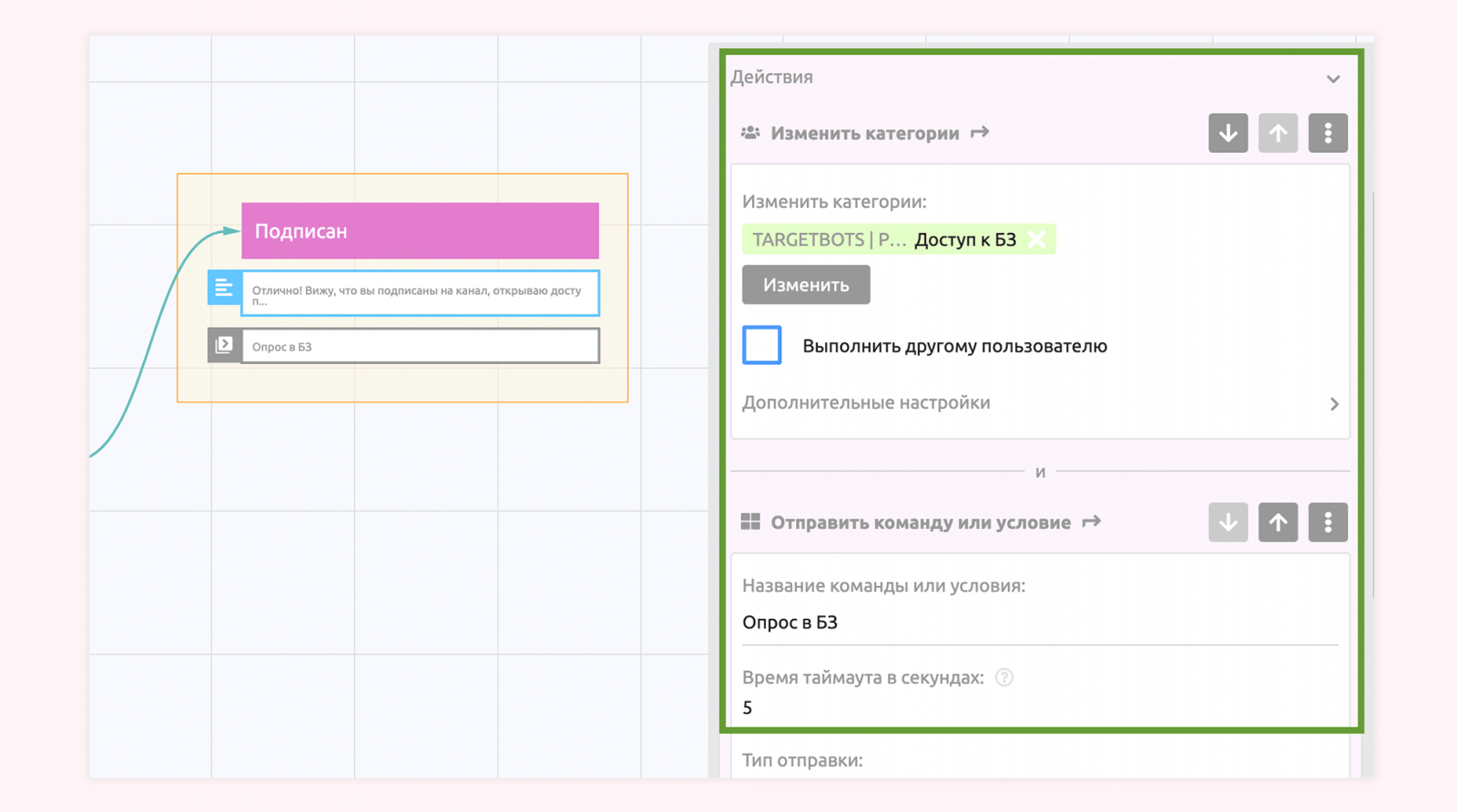 Действия, выполняемые во второй команде: назначение категории «доступ к информации» и отправка команды, которая уже находится в разделе с лид-магнитами.
