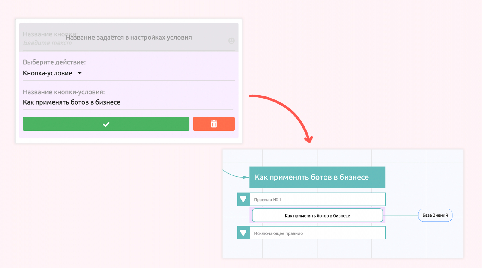 — Исключающее правило (если правило выше не было выполнено, то произойдёт это действие) ➞ скрыть кнопку.