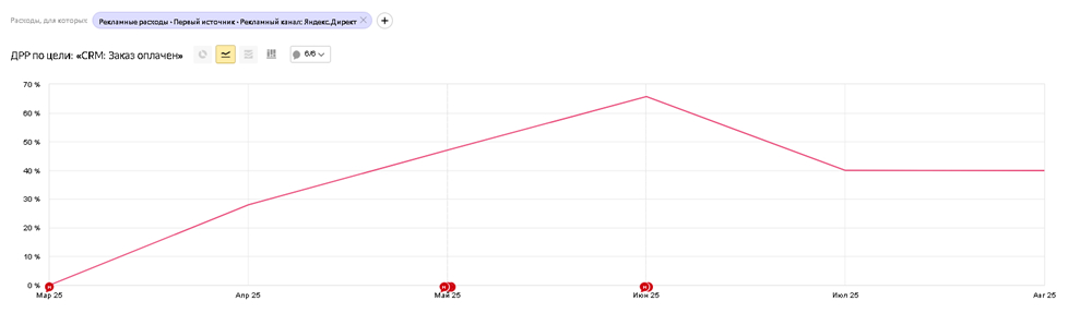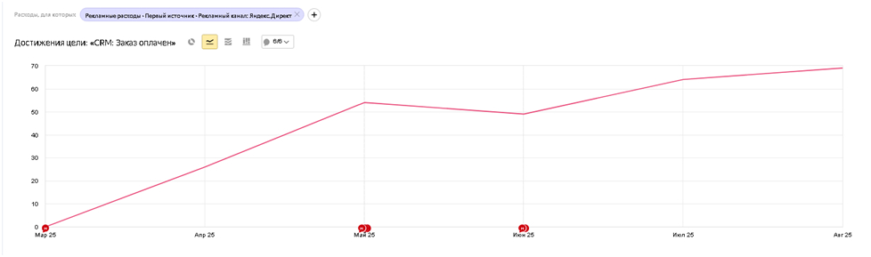 Фокус сместился с «больше лидов» к росту продаж при более эффективном использовании бюджета. Сквозная аналитика позволила исключить некорректные обращения, усилить рабочие кампании и оценивать результат рекламы по объемам реальных продаж и уровню ДРР, а не только по количеству лидов.