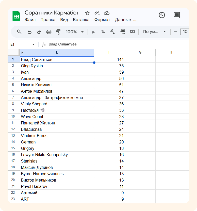 Но раньше активность почти не отслеживалась, а весь учёт вёлся вручную в таблицах. Баллы начисляли только за письменную благодарность в чате, когда кто-то писал «спасибо». Но если участник активно помогал другим, но не переписывался в группе, система не фиксировала его вклад.