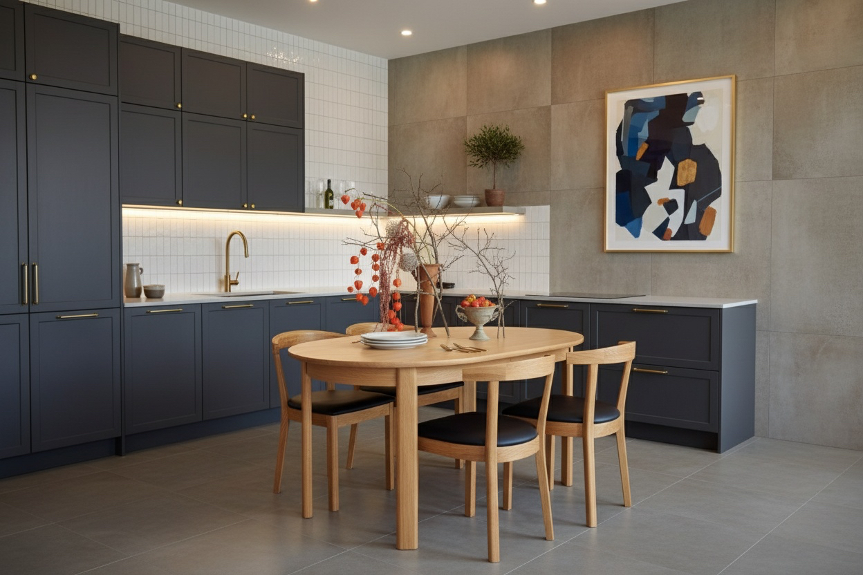 Дубовые изделия выглядят монументально и основательно. Они идеально подходят для классического, английского или кантри-дизайна, добавляя интерьеру тепла и благородства. Бук же имеет более лёгкую текстуру и светлую палитру — он часто используется в стилях скандинавский минимализм, модерн, эко. Такие столы и стулья отлично сочетаются с металлом, стеклом, камнем и текстилем, позволяя дизайнерам создавать сбалансированные и современные композиции. Благодаря естественной текстуре и оттенкам, дуб и бук универсальны — они уместны и в городской квартире, и в загородном доме.