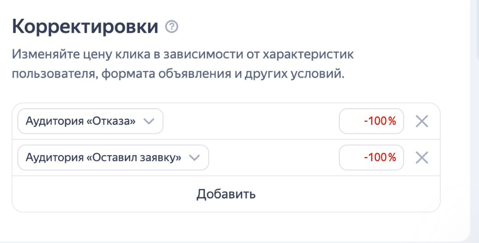 Под каждую из этих групп мы настраиваем отдельные показы. Что важно: ретаргет Яндекса может догонять пользователей не только в РСЯ, но и на других площадках — ВК, Одноклассниках, Авито. Это дает широкий охват без необходимости тянуть базы вручную. Если у клиента есть собственный сайт с трафиком, мы ставим на него тот же пиксель и тоже используем его аудиторию. Все просто: есть посещения — есть догонка.