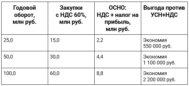 ОСНО как альтернатива (при закупках с НДС 60%+ от выручки):