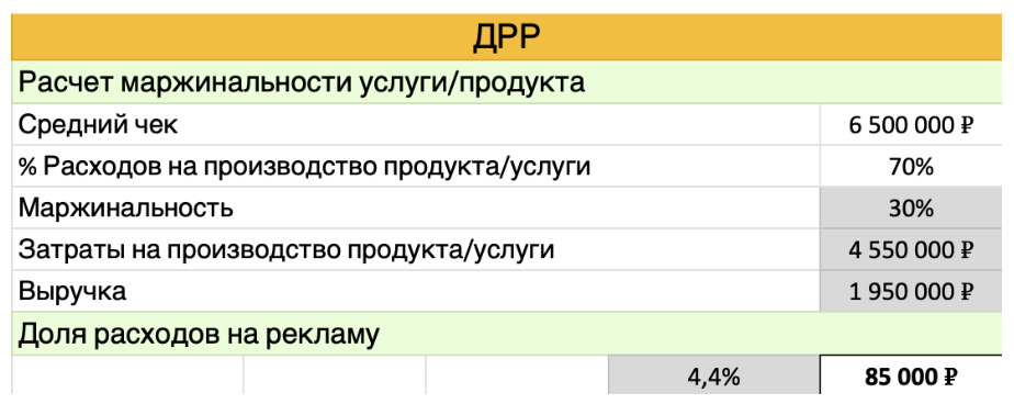 Остановлюсь подробнее на доле рекламных расходов. Её высчитывали таким образом: