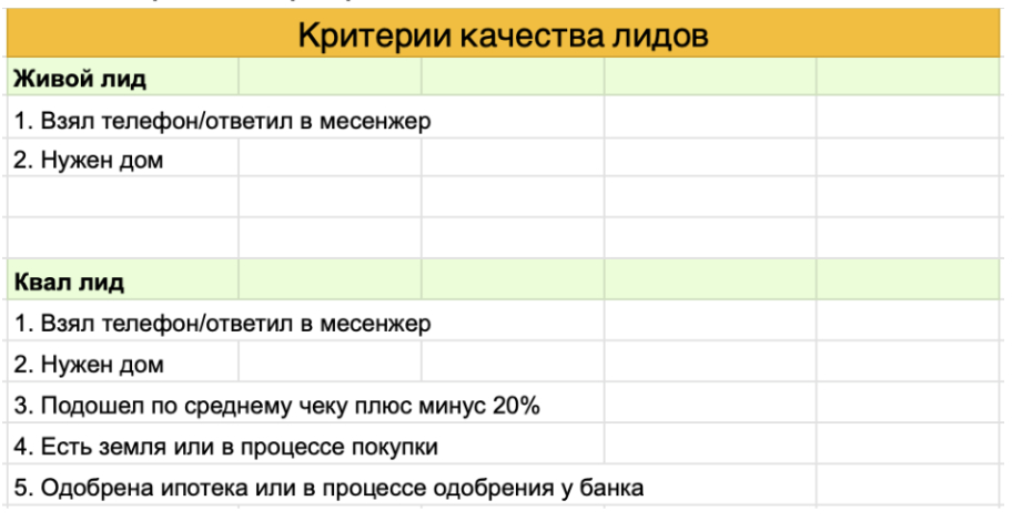 Мы также определили критерии качества заявок: