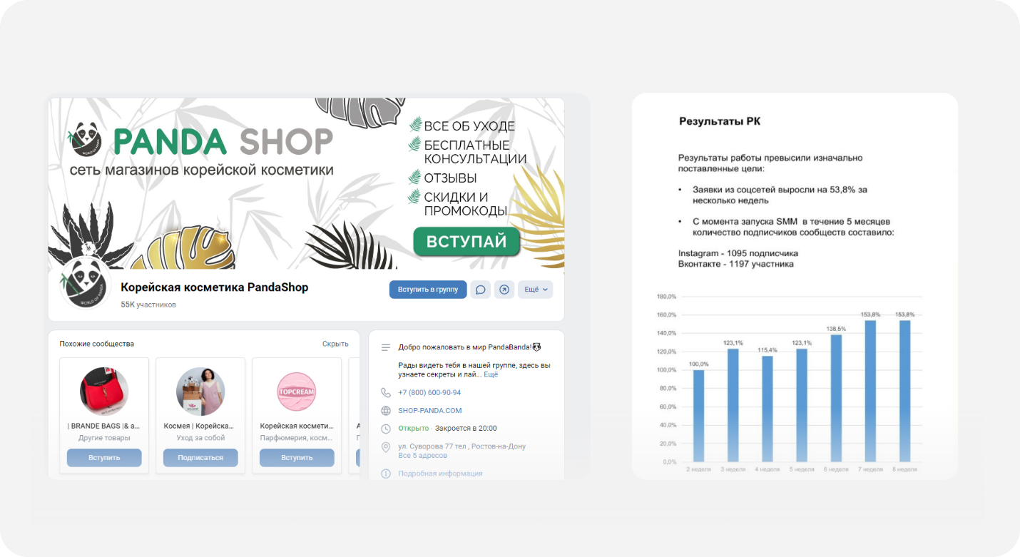 Когда косметический магазин PandaShop обратился к нам, их цель была проста, но амбициозна: увеличить поток заявок через соцсети и активно продвигать новый магазин в Туле. PandaShop — сеть мультибрендовых магазинов корейской косметики, которая продаёт оригинальные продукты напрямую с заводов по доступным ценам. Несмотря на пятилетний опыт, продажи в соцсетях оставляли желать лучшего.