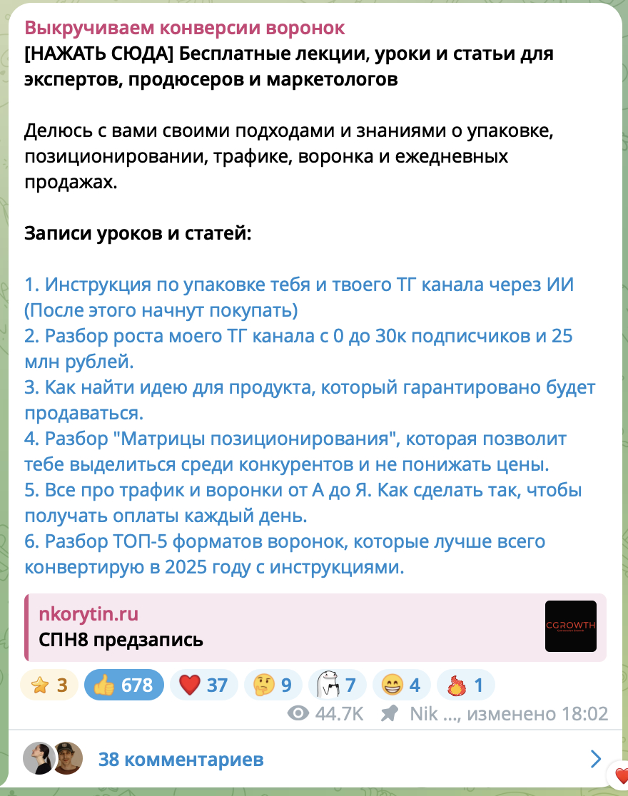 Если ты действительно хочешь зарабатывать постоянно, стабильно и много на своей экспертности, более того, при этом вкладывая относительно мало денег в платную рекламу для привлечения клиентов, и если ты хочешь получать максимально дешевых и лояльных подписчиков, реально работающий способ есть только один: