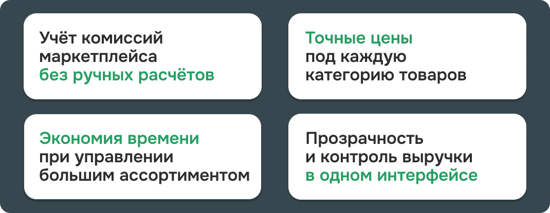Результат — продавец сохраняет прибыль даже при разной комиссии, а сервис снимает ручные расчеты и помогает удерживать маржу там, где комиссионные условия самые жёсткие.