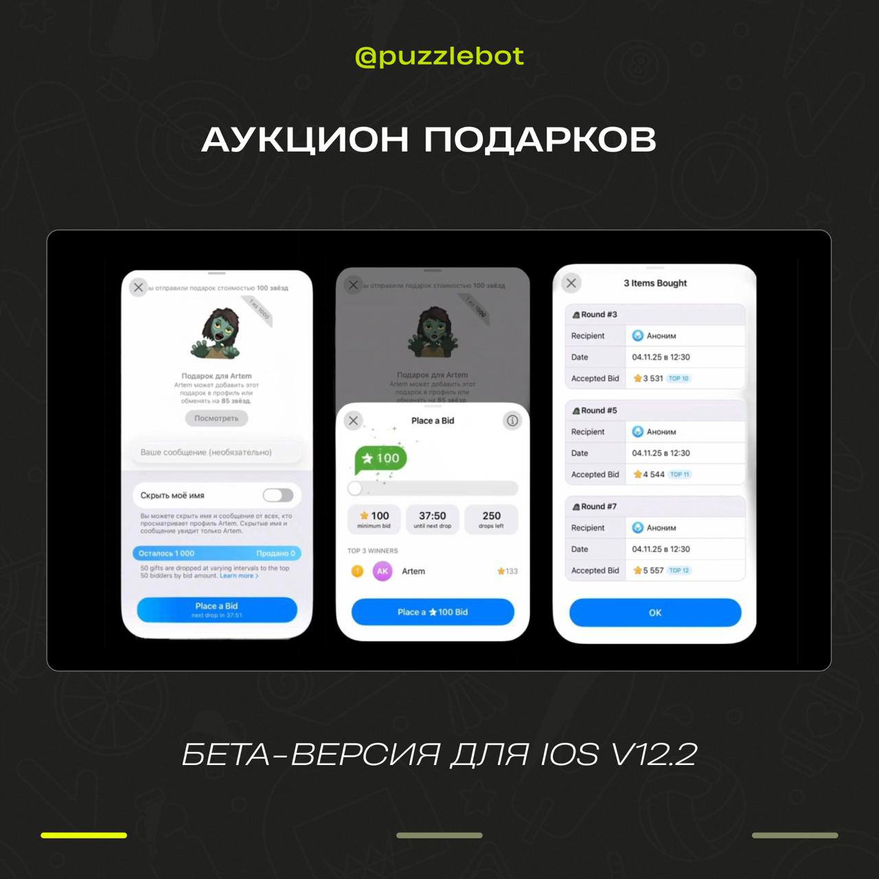🏎В бета-версии Telegram для iOS 12.2 тестируется аукцион подарков. Теперь получить подарок можно через ставки