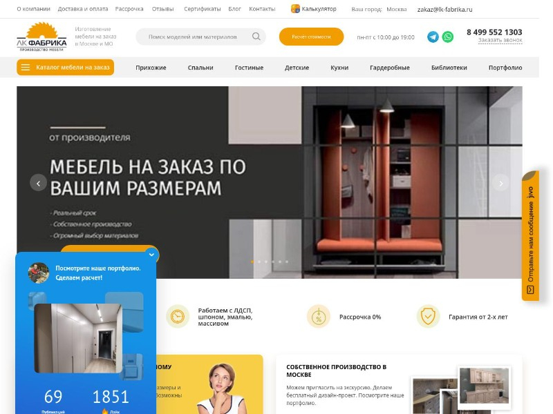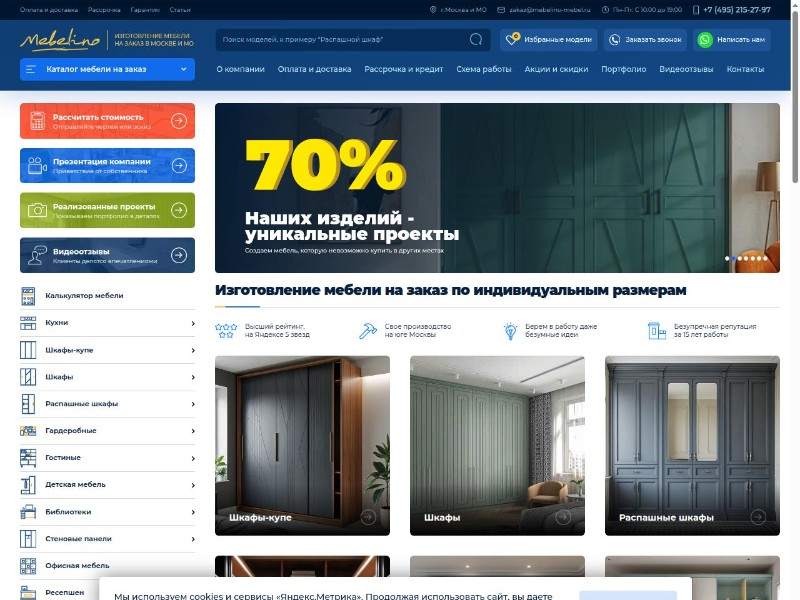 - Ассортимент: шкафы-купе, гардеробные, кухни, прихожие, детские комнаты, офисная мебель.