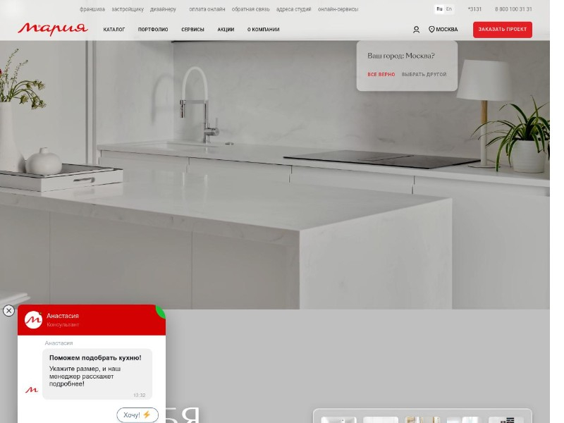 Одна из самых известных российских мебельных марок. Компания «Мария» работает с 1999 года, прежде всего прославившись качественными кухнями. Сегодня фабрика выпускает мебель практически для всей квартиры: кухни, шкафы-купе, гардеробные, мебель для ванных комнат, диваны. Базовая философия - постоянное обновление коллекций под запросы клиентов. Производственная площадка «Марии» занимает 92 000 м², полностью оснащена высокоточным европейским оборудованием, а материалы - премиального уровня (австрийские плиты, итальянские эмали и др.). Фабрика работает в среднем и премиум-сегменте: есть относительно недорогие линейки и эксклюзивные дизайны.