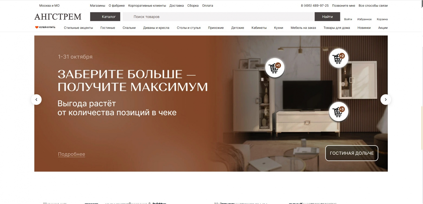 - Ассортимент: модульные стенки и тумбы для гостиной, прихожие, шкафы-купе, детская мебель, линейки кухонь эконом-класса.