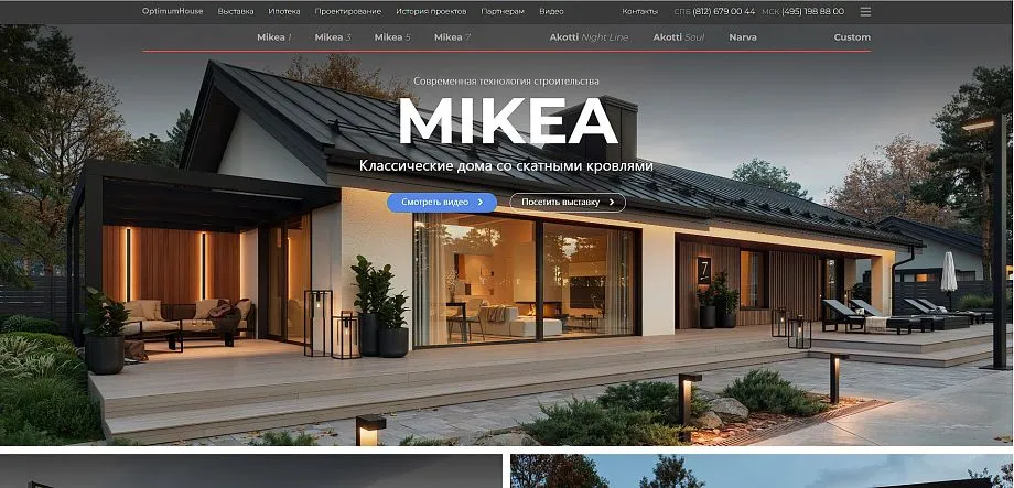 «Optimum House» оказывает услуги современного строительства по скандинавским технологиям. Строит дома любых размеров (от компактных шале до «особняков» 600+ м²), а также возводит бани, гаражи и беседки по желанию заказчика. Предлагает услуги «под ключ» (строительство и внутренняя отделка), а также помощь в покупке участка и ипотечном оформлении.