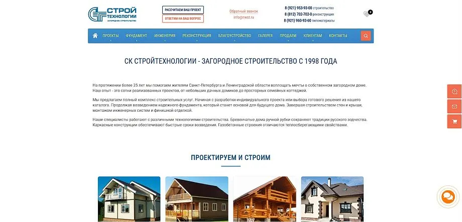 СК «Стройтехнологии» – компания полного цикла с опытом свыше 25 лет. Занимается строительством каркасных, газобетонных и бревенчатых домов по готовым и индивидуальным проектам. Для загородных домов компания выполняет полностью «под ключ» все инженерные системы: электро- и водоснабжение, отопление, канализацию, а также дренаж и благоустройство участка.
